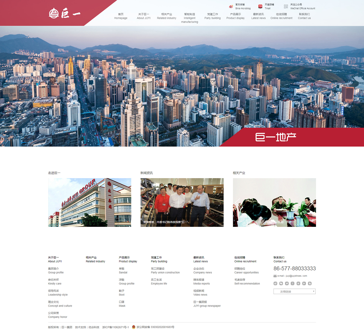 巨一集團(tuán)始創(chuàng)于1988年,現(xiàn)已發(fā)展為集鞋類、口罩制造,醫(yī)療器械、國(guó)際貿(mào)易、房地產(chǎn)、商場(chǎng)、酒店等于一體的無區(qū)域企業(yè)集團(tuán)。員工5000多名。企業(yè)先后獲得中國(guó)鞋類出口基地龍頭企業(yè)、國(guó)家高新技術(shù)企業(yè)、海關(guān)AEO高級(jí)認(rèn)證企業(yè)、中國(guó)馳名商標(biāo)、中國(guó)真皮鞋王、省AAA級(jí)“守合同重信用”企業(yè)、浙江名牌、浙江出口名牌、浙江省質(zhì)量獎(jiǎng)、溫州市領(lǐng)軍企業(yè)等榮譽(yù)稱號(hào)。黨和國(guó)家領(lǐng)導(dǎo)人習(xí)近平、張德江、賈慶林、羅干等先后蒞臨公司視察或親切接見公司領(lǐng)導(dǎo)。
