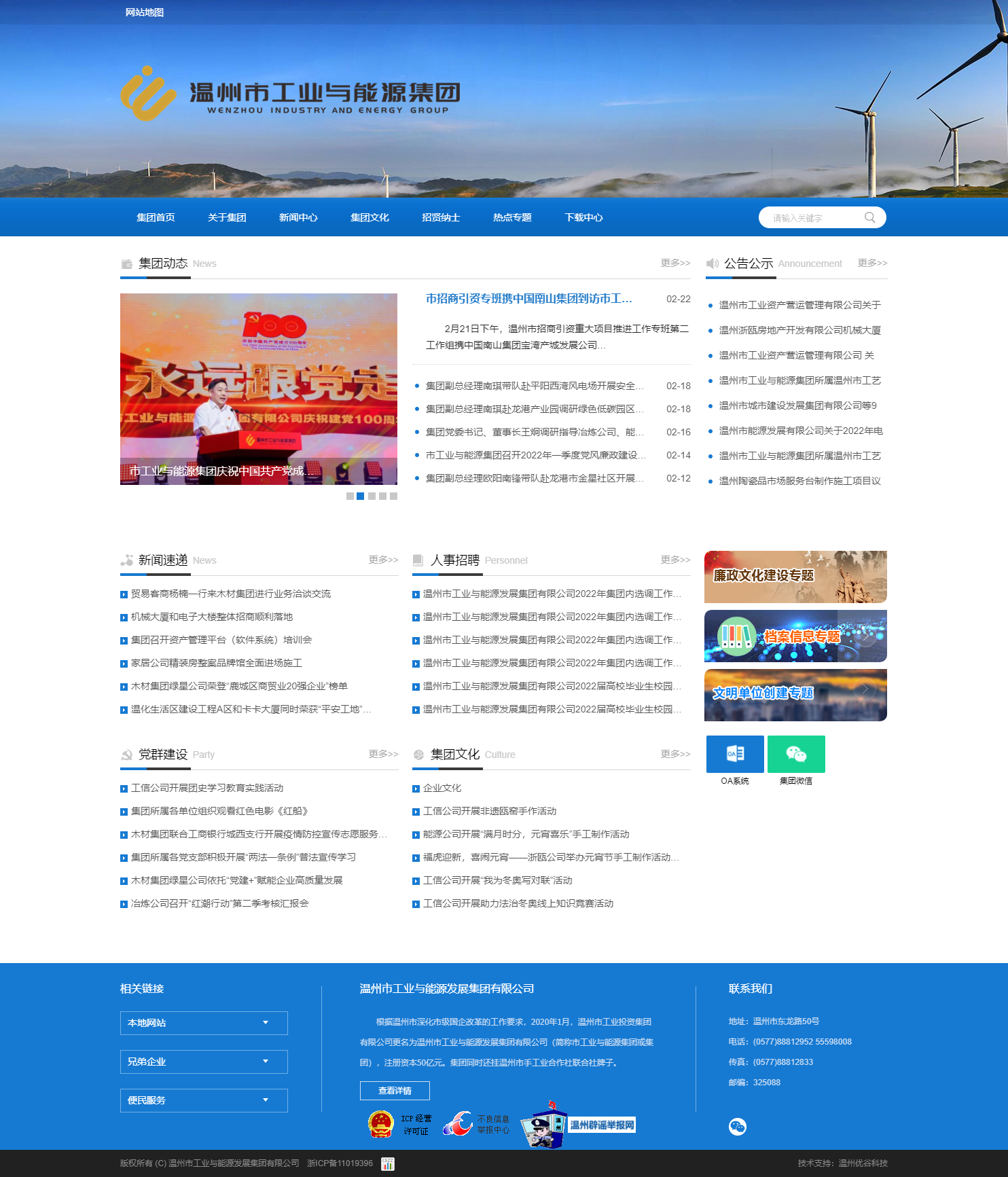 2020年1月,溫州市啟動(dòng)國有企業(yè)深化改革,原溫州市工業(yè)投資集團(tuán)優(yōu)化組建為現(xiàn)在的溫州市工業(yè)與能源集團(tuán),為溫州市十大國有集團(tuán)之一,注冊資本50億元。集團(tuán)同時(shí)還掛溫州市手工業(yè)合作社聯(lián)合社牌子。